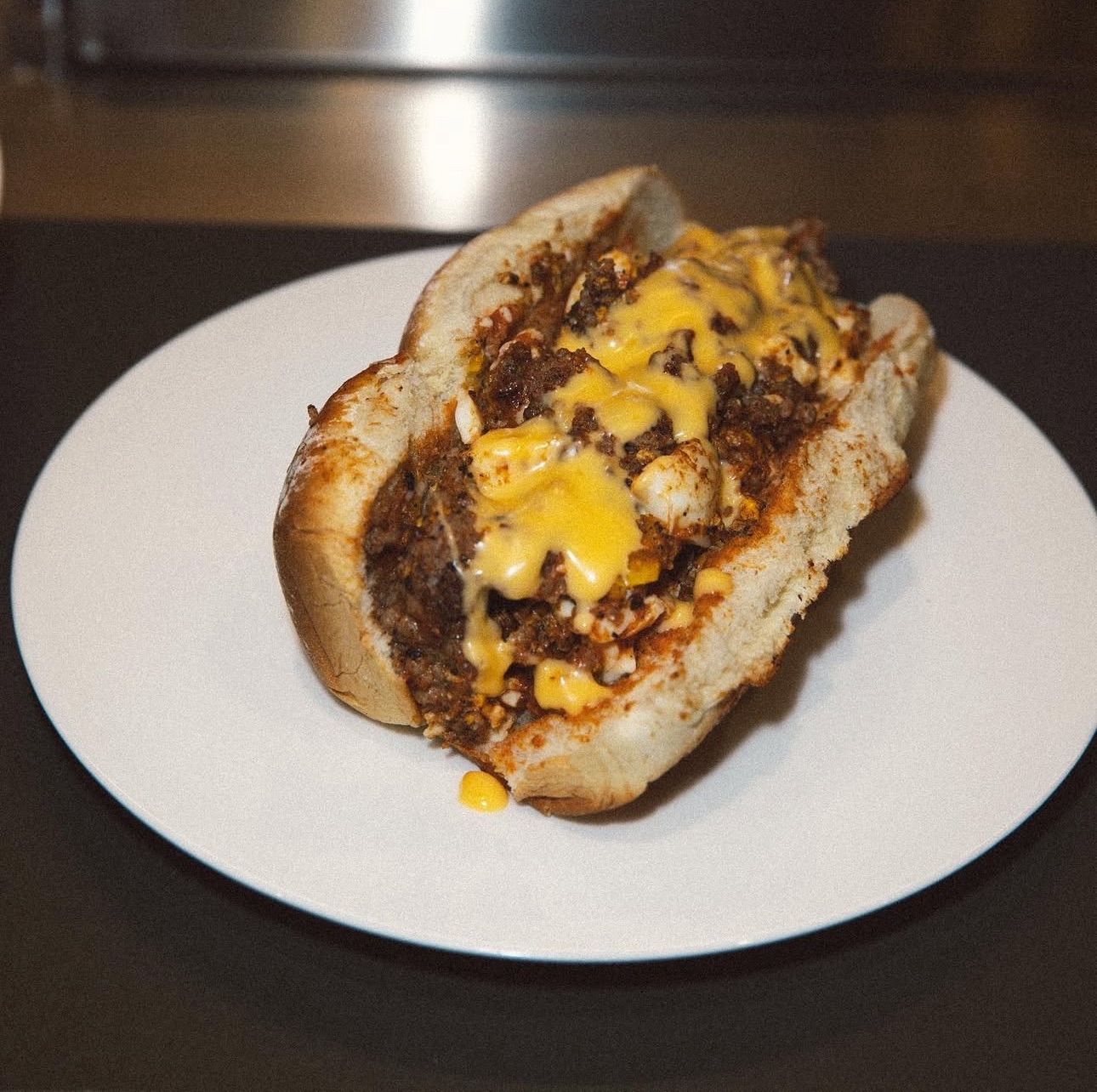 wrap it in a paper towel and microwave the whole thing for 10–15 seconds to soften the bun and let it all glue together.